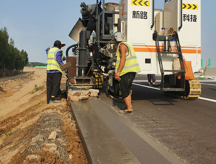 NC1300路緣石滑模機-山西晉城G207國道防撞護欄滑模攤鋪工程